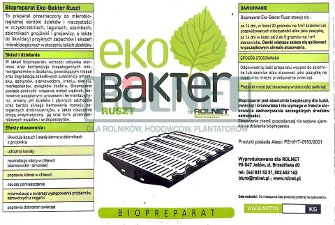 EKOBAKTER RUSZT mikrobiologicza obróbka ścieków, nieczystości w oczyszczalniach, szambach, zbiornikach gnojówki i gnojowicy 1kg