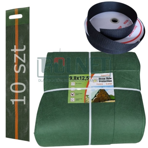 Fliz do okrywania słomy 9,80 x 12,5 m + rzep 25 m + 10 szt. worków obciążeniowych – kompleksowa ochrona balotów