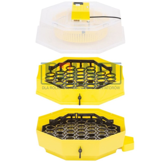 Inkubator wyposażony jest w półautomatyczny system obracania jaj oparty na koszyczkach i dźwigni. Jednym ruchem obracane są wszystkie jaja znajdujące się na tacy.