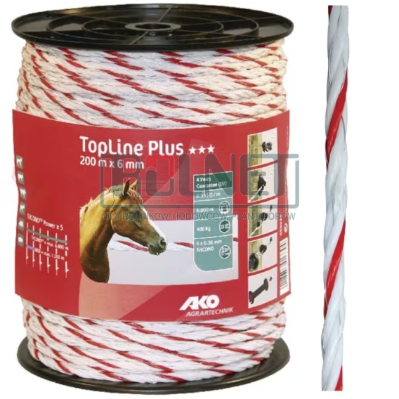 Linka do pastucha elektrycznego AKO TopLine Plus 200 m – 6 mm, 6 przewodników, 400 kg wytrzymałości
