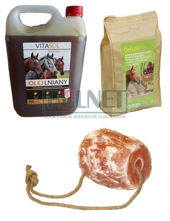 Olej Lniany dla koni + lizawka himalajska + przysmak dla koni 1kg