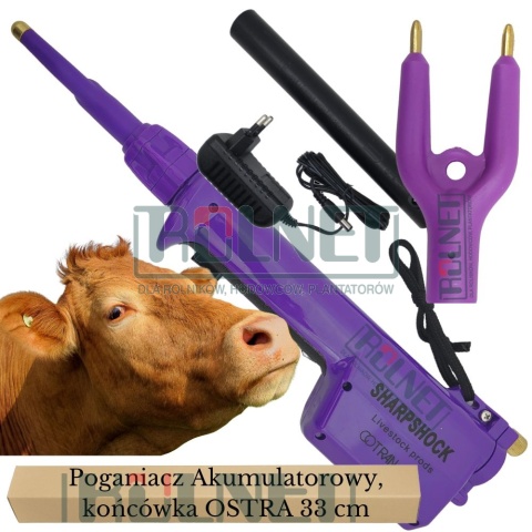 Profesjonalny poganiacz elektryczny akumulatorowy o długości 14 cm z ostrą końcówką, idealny do pracy w ograniczonych przestrzeniach i w bliskim kontakcie ze zwierzętami. Sprawdza się w pracy z bydłem, trzodą chlewną oraz owcami – zwłaszcza tymi z dłuższą sierścią.