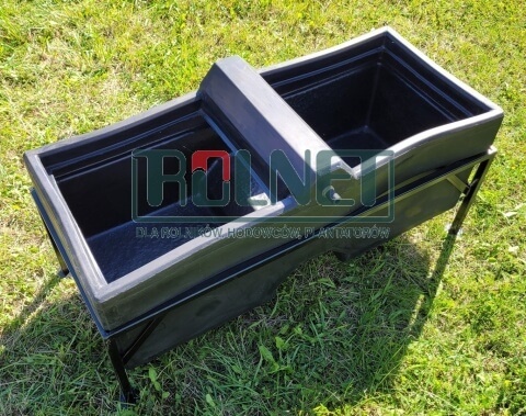 Poidło wannowe dla cieląt ze stali malowanej i tworzywa polietylenowego. Może służyć także jako poidło dla kóz i owiec a także karmidło dla kóz.
